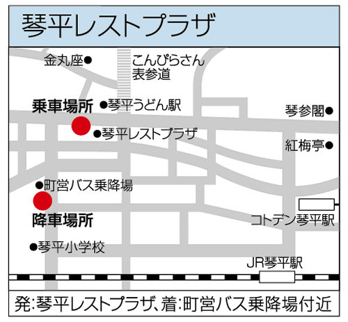 こんぴらさん表参道入口・琴平レストプラザ 18:50集合/19:00出発